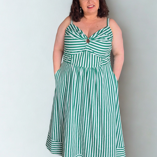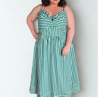 This Green & White Stripe Dress, with its keyhole detail promises a chic urban look and a comfortable fit. Its elasticated shirring at the back cinches in the waist. The perfect everyday dress.